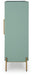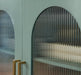 Clearly a stunning statement piece for lovers of contemporary design, this sleek accent cabinet wows on many levels. Magnificent arched fluted glass door panels and goldtone metal hardware exude serious modern flair. And how about that fresh green finish? Two shelves add practicality to the cabinet's striking style.