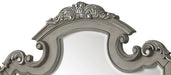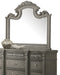Cosmos Furniture's Silvy transitional style Mirror in a gray salvaged natural wood finish. Crafted with a transitional look that is an ideal for someone looking for a contemporary traditional look. Arched top, framed with wood carved details and a beveled Mirror insert gives this Mirror a regal look. Matching Dresser and other bedroom pieces sold separately.