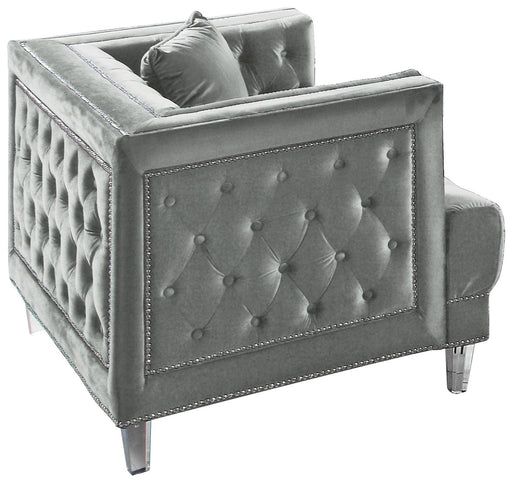 Kendel Silver Modern Style Gray Chair with Acrylic Legs, 30 x 36 x 40, 84lbs. Cosmos Furniture's Kendel Silver modern style silver velvet chair wi...