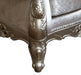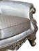 Emily Transitional Style Chair in Champagne finish Wood, 49 x 41 x 51, 110lbs. Cosmos Furniture's Emily transitional style Chair in champagne finish wood. Unafraid of the spotlight, this camelback style Chair with elegant roll arms is wrapped in blush silk and chenille upholstery. This Chair features button tufted back rests, nail head and piping trim, designer throw pillows, while turned Queen Anne legs complete the look. Constructed from carved solid wood with a brush champagne color coating, this is sure to create intimate conversation spaces. Throw pillows are included. Matching pieces are sold separately. - Transitional Style Chair - In Champagne finish Wood - Carved detailed crown - Tufted Tight back - Removable seat cushions - Drop in coil seating - Camel Back - Rolled arms - Nail head trim - Throw pillow included - Matching pieces sold separately