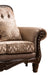 Giana Traditional Style Sofa in Cherry finish Wood, 47 x 35 x 89, 170lbs. Cosmos Furniture's Giana traditional style Sofa in cherry finish wood. Founded atop arrow foot legs, this sofa's frame is constructed from solid carved wood in a cherry finish and is wrapped in coffee colored silk and chenille upholstery. Eye-catching updates, such as rolled arms, crystal button tufting, piping trim, and a gently curved camelback seats, round out the design. Plus, with designer throw pillows this design is a great way to dress up the living room. Throw pillows are included. Matching pieces are sold separately. - Traditional Style Sofa - In Cherry finish Wood - Tufted tight back seating with crystal Buttons - Detailed crown wood trim - Rolled Arms - Drop In-coil seating - Wood Frame - Throw Pillows included - - - -