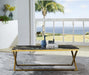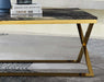 Cosmos Furniture's Ara modern style marble Coffee Table with metal base reflects your sophasticated rich taste. A marble tabletop with cross legged base in gold is combination to go with any decore. The base is constructed of metal that provides its maximum durability. This trendy piece of furniture is perfect for modern living rooms and it brings out the best in your interior decor. Bring home this stylish table and enhance your living room space.