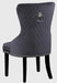Cosmos Furniture's Bronx transitional style Silver Chair in dark walnut finish wood comes as a Set of Two (2) Chairs. Bronx high back chair is a great addition to any room and could be matched with any dining table to add color. This modern design is perfect for the head and/or foot of your dining table, living room, bedroom and/or foyer providing dramatic layout. Built from a strong hardwood frame, covered with soft velour fabric, while complimented with a well-padded seat and tufted back is outfitted with nail head trim for extreme comfort. Accented with a chrome pull ring, and crystal, on the back, make the Bronx Chair a signature piece in your home. Sold as a set of 2. More colors available.