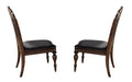 Rosanna Traditional Style Dining Side Chair in Cherry finish Wood, 44 x 26 x 26, 60lbs. Cosmos Furniture's Rosanna traditional style Side Chair in cherry finish wood comes as a Set of Two (2) Chairs. The graceful elegance of our Rosanna collection makes every meal a celebration. Expertly crafted of solid hardwoods and resin with selected veneers, hand-rubbed rich cherry finish. The Rosanna dining side chair has front turned spindle legs accompanied by finely detailed ornate carvings in a brushed gold. These handsome side chairs are upholstered in leather-like material. Chairs are sold as a set of two (2). Matching Rosanna Dining Table, more Rosanna Dining Chairs, Rosanna Dining Hutch, Rosanna Dining Buffet and Rosanna Dining Server are sold separately. - Traditional Style Dining Side Chair - In Cherry finish Wood - Gold brushed feather and scroll details - Padded Seating - Upholstered cushion seat in black - Sturdy and easy on eyes set - Matching More Dining Chairs sold separately - Matching Dining Set pieces are sold separately - Sold as a set of 2 - Must buy 2 Chairs - -