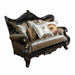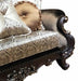 Aroma Traditional Style Loveseat in Cherry finish Wood, 53 x 41 x 68, 152lbs. Cosmos Furniture's Aroma traditional style Loveseat in cherry finish wood has rich upholstery which accentuate its elegant style. The decorative carving on back crown, base rail and decorative feet highlights the overall look of this loveseat. Additionally, the decorative throw pillows enhance this classic look which perfectly is suitable for your special room. Crystal tufted back on this collection brightens up the living room. Throw pillows are included. Matching pieces are sold separately. - Traditional Style Loveseat - In Cherry finish Wood - Crystal Tufted Buttons - Button tufted back - Curved rolled Arms - High-density foam - Strong hardwood frame - Drop in-coil - Throw Pillows included - Matching pieces sold separately - -