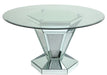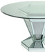 Cosmos Furniture's Diva modern style Dining Table in silver and glass is aesthetically in an entertainment ensemble. This is distinctive standish dining table with offering a modern twist on a classic pedestal-style silhouette. This design showcases an angular base with mirror and faux diamond inlay and a unique X shape pedestal base. Sleek and stunning, this modern table is complemented by tempered clear glass top. Both elements have come together to produce a truly visionary table that will make dinner parties all the more stylish. Enhance your room decor with this stunning dining room table. Matching Coffee Table and End Table also available and are sold separately.