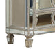 Brooklyn Contemporary Style Dresser in Silver finish Wood, 41 x 20 x 68, 229lbs. Cosmos Furniture's Brooklyn contemporary style Dresser in silver finish wood is ultra-contemporary in design and scale, the Brooklyn 8-drawer Dresser will add modern flair to your bedroom. Exceptionally beautiful as it's brushed silver finish on wood combining with the Mirror trim accented with silver finished feet. Each case piece is highlighted with Mirror inserted decoration case goods in the Brooklyn collection. The wood box deep drawers have dovetail construction with full extension glides. Also, the bottom drawers are dust proof. Matching Mirror and other bedroom set pieces are sold separately to complete the entire look of your excellent taste. - Contemporary Style Dresser - In Silver finish Wood - Tapered spade foot legs with mirrored fronts - Eight (8) Drawers - Dovetail construction drawers - Full extension deep wood box Drawers glides - Bottom drawer dust proof - Matching Mirror sold separately - Matching bedroom pieces sold separately - - -