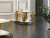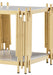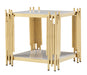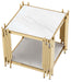 Cosmos Furniture's Jaden modern style marble top End Table with metal finish is a unique geometric base. Beautiful and sophisticated, this table is the perfect choice for a contemporary setting. It features a white faux marble tabletop which is supported on gleaming gold geometric linear metal base and additional storage space shelf offers a hint of glamour and modern styling. This elegant table will surely add a spark of life to any home decor. Matching Coffee Table is sold separately.