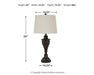 A delightfully turned pedestal base gives this table lamp a sense of easy elegance. Its dark bronze-tone metal is a simply stylish counterpoint.