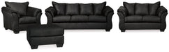 Talk about fine lines and great curves—that’s the beauty of this chair and ottoman. Made to suit your appreciation for clean, contemporary style, this fashion statement is complete with a striking flared frame, comfy pillow top armrests, tapered feet on the ottoman and an ultra-soft upholstery that holds up to everyday living.