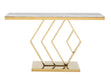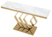 Gamila Modern Style Marble Console Table with Metal Base, 31 x 16 x 55, 88lbs. Cosmos Furniture's Gamila modern style marble top Console Table with metal finish is a unique geometric base. Beautiful and sophisticated, this table is the perfect choice for a contemporary setting. It features a white faux marble tabletop which is supported on gleaming gold geometric linear metal base offers a hint of glamour and modern styling. This elegant table will surely add a spark of life to any home decor. - Modern Style Console Table - In Metal Finish - With Marble Top - Complements any Decor - Mix n Match - - - - - - -
