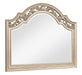 Cosmos Furniture's Valentina traditional style Mirror in gold finish wood has cravings which are hand brushed in metallic gold. This highly decorative mirror frame has carving on the outer borders which are hand brushed in a golden finish. Carefully crafted in selected wood and veneers, perfectly suited for your master bedroom. It has intricate detailed carvings, looping and a gorgeous hand brushed Gold finish that accentuates the beveled mirror. Matching Dresser and other bedroom pieces are sold separately to complete the entire look of your excellent taste.