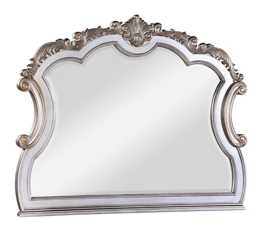 ALECIA Mirror, White, 38"W X 2 1/8"D X 42"H, 37.4lbs. The bell-shaped top edge with crown molding, combined with faux wood carved details that ador...