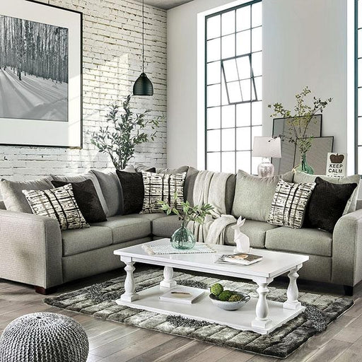 Whether your vision is clean and contemporary or cozy modern farmhouse, this sectional in a stone-tone neutral upholstery has the corner on style. ...