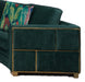 Marco Sectional in Green with Gold Finish, 35 x 95 x 183, 406lbs. Cosmos Furniture's Marco Sectional Sofa is in dark green velvet with dull gold finish geometrically aesthetic strips on the outside arms. This semicircular sectional sofa makes your living room look luxurious with our exotic boutique collection. The oversized blocked arms, spring coil is accented with dull gold finish metal completes the look with high-end green velvet fabric. The printed silk toss pillows give you the extra comfort for your back and makes a style statement in your living room. Four (4) throw pillows are included. - Semicircular Sectional Green Sofa - Dull Gold finish Block Legs - Gold finish Strips on the Outside Arms - Oversized Blocked Arms - High-density foam - Strong hardwood frame - Drop in-coil - Four (4) Throw Pillow included - Matching pieces sold separately - - -