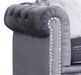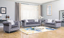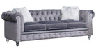 Cosmos Furniture's Sahara Gray modern style gray Sofa sits on acrylic legs. The stunning Sahara Gray Sofa is the perfect addition to any space. Rich gray velvet covers the plush. The comfortable seat is padded with high-density foam and has modern crystal tufted design on the front, on the back and sides. Strength and beauty are guaranteed with a wood frame and turned acrylic legs. The decorative pillows are included for extra support. The crystal nail head trim that outlines the front edge of this beautiful piece to add an extra element of elegance. Throw pillows are included. Matching pieces are sold separately to complete the set.