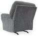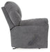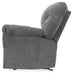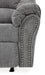 Why sacrifice comfort for style (or style for comfort) when you can have the best of both in this rocker recliner in pewter gray. Elements include a chic divided-back design and pillow top wrapped armrests that make nodding off all too easy. Calling attention to the elegantly flared armrests—black nickel nailhead trim for a punch of cool character.